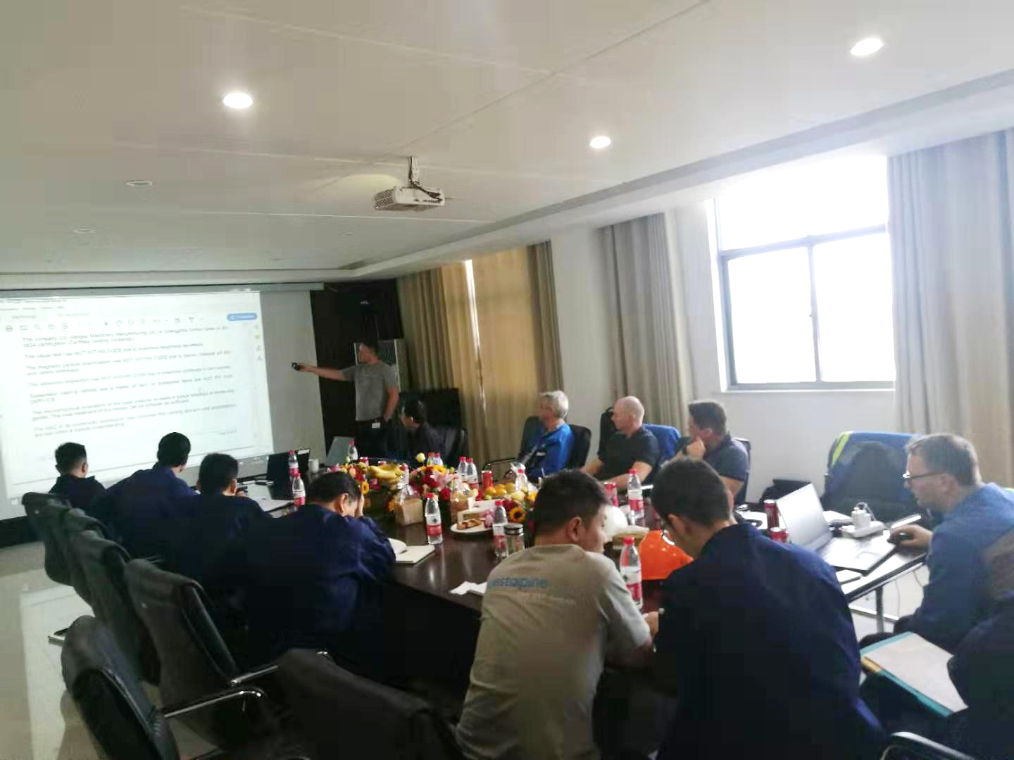 第二天上午形成相關(guān)檢驗報告,并與下午雙方繼續(xù)開展交流研究,并就相關(guān)存有問題雙方深入探討,查明原因,找到癥結(jié)。同時,奧方人員親至車間,就相關(guān)檢測技術(shù)及方法進(jìn)行指導(dǎo),尤對鑄造產(chǎn)品補焊方法和工藝規(guī)范進(jìn)行全程嚴(yán)謹(jǐn)認(rèn)真指點,受到員工好評。